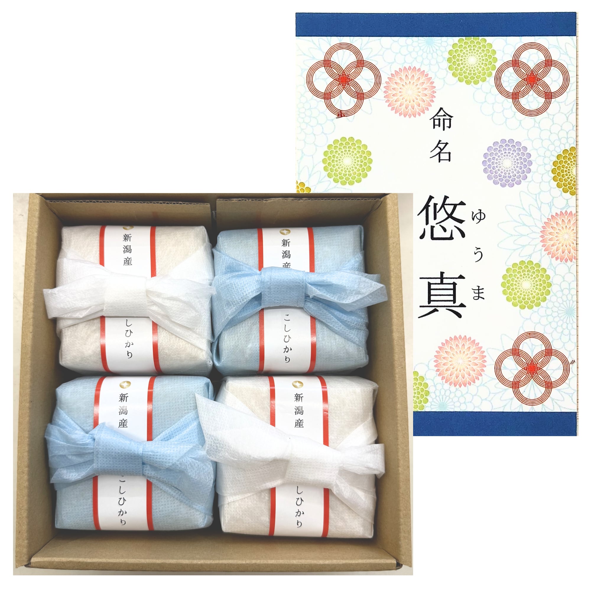 出産祝いにお使いいただける五ツ星マイスターが厳選した新潟県産コシヒカリのお名入れギフト。